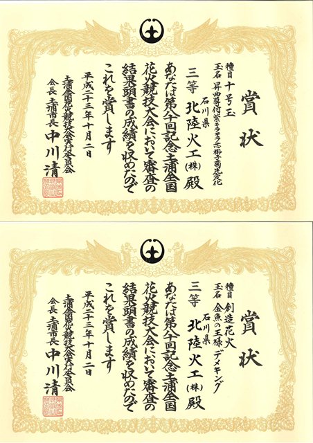 その中で、北陸火工は創造花火の部と、10号玉の部に参加し、